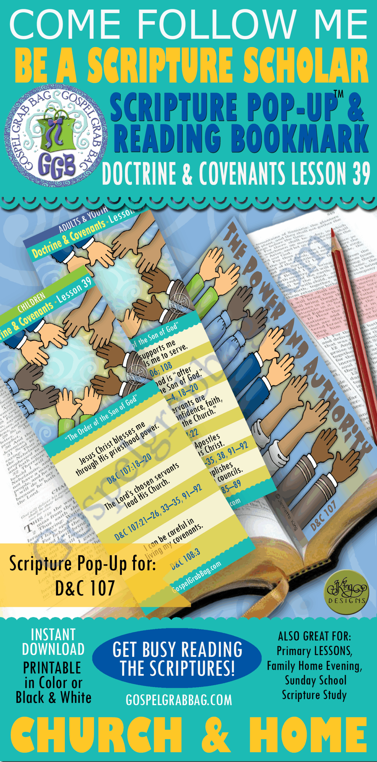 6. Go to Come Follow Me Scripture Scholars reading bookmarks, pop-ups, & stamps (see below)